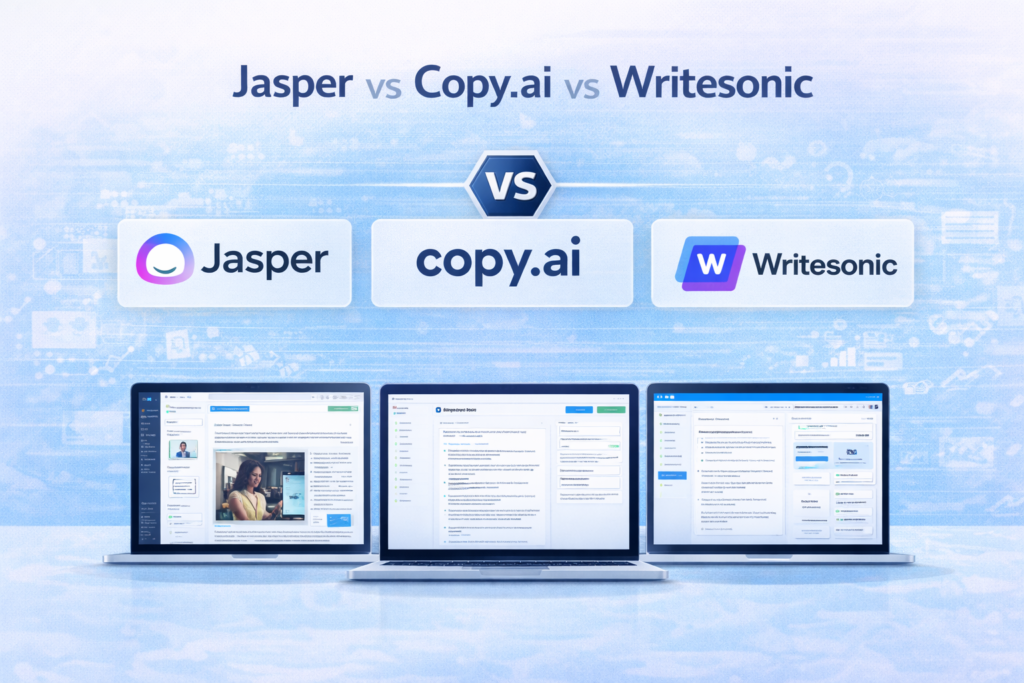 With so many AI tools available, it can be difficult to decide which one fits your needs. In this comparison, we analyze Jasper AI, Copy.ai, and Writesonic side by side to help you choose the best AI writing tool for your business, marketing, or content creation goals.